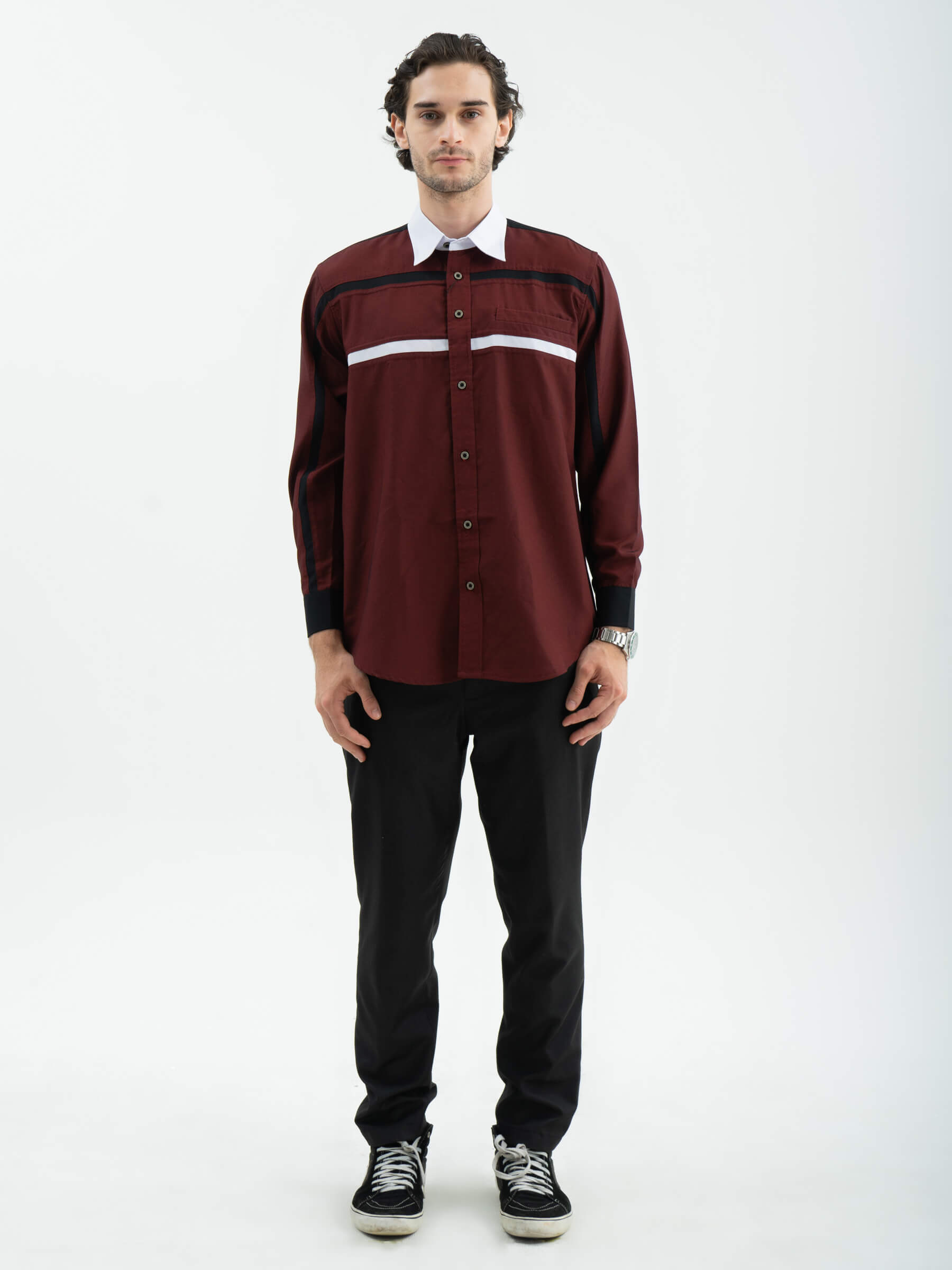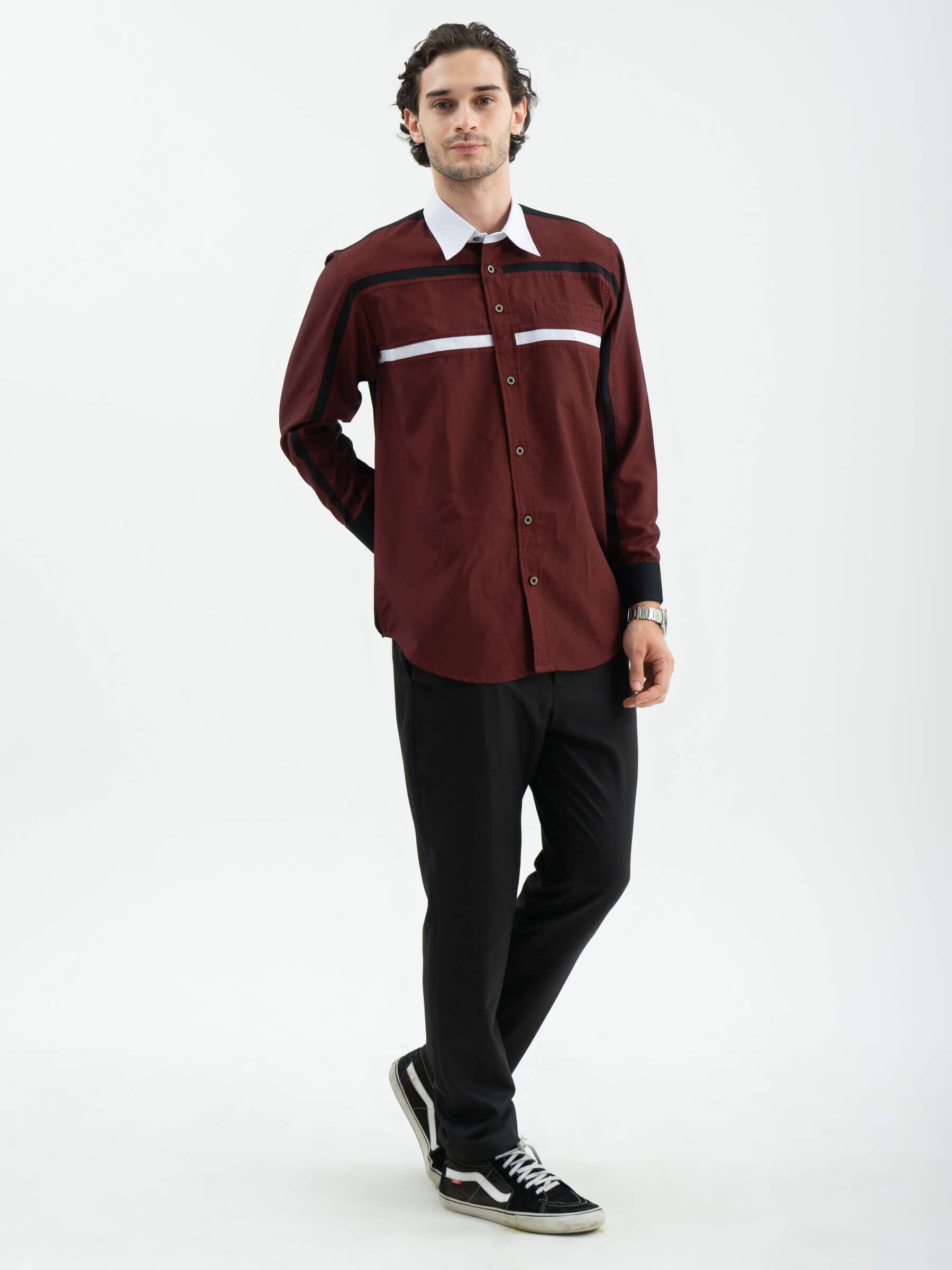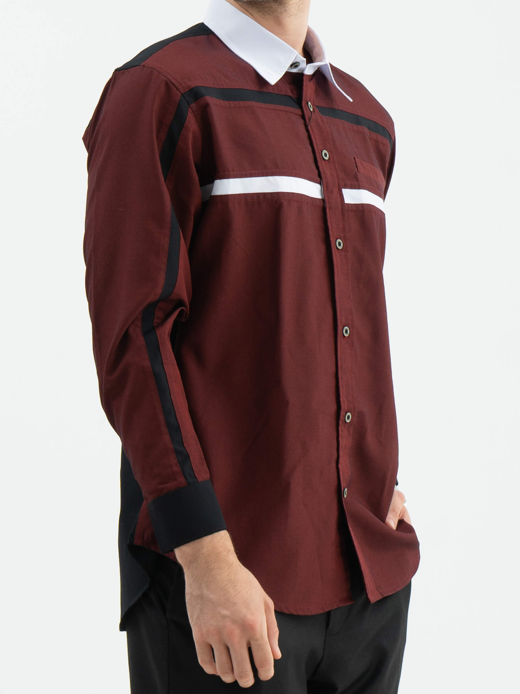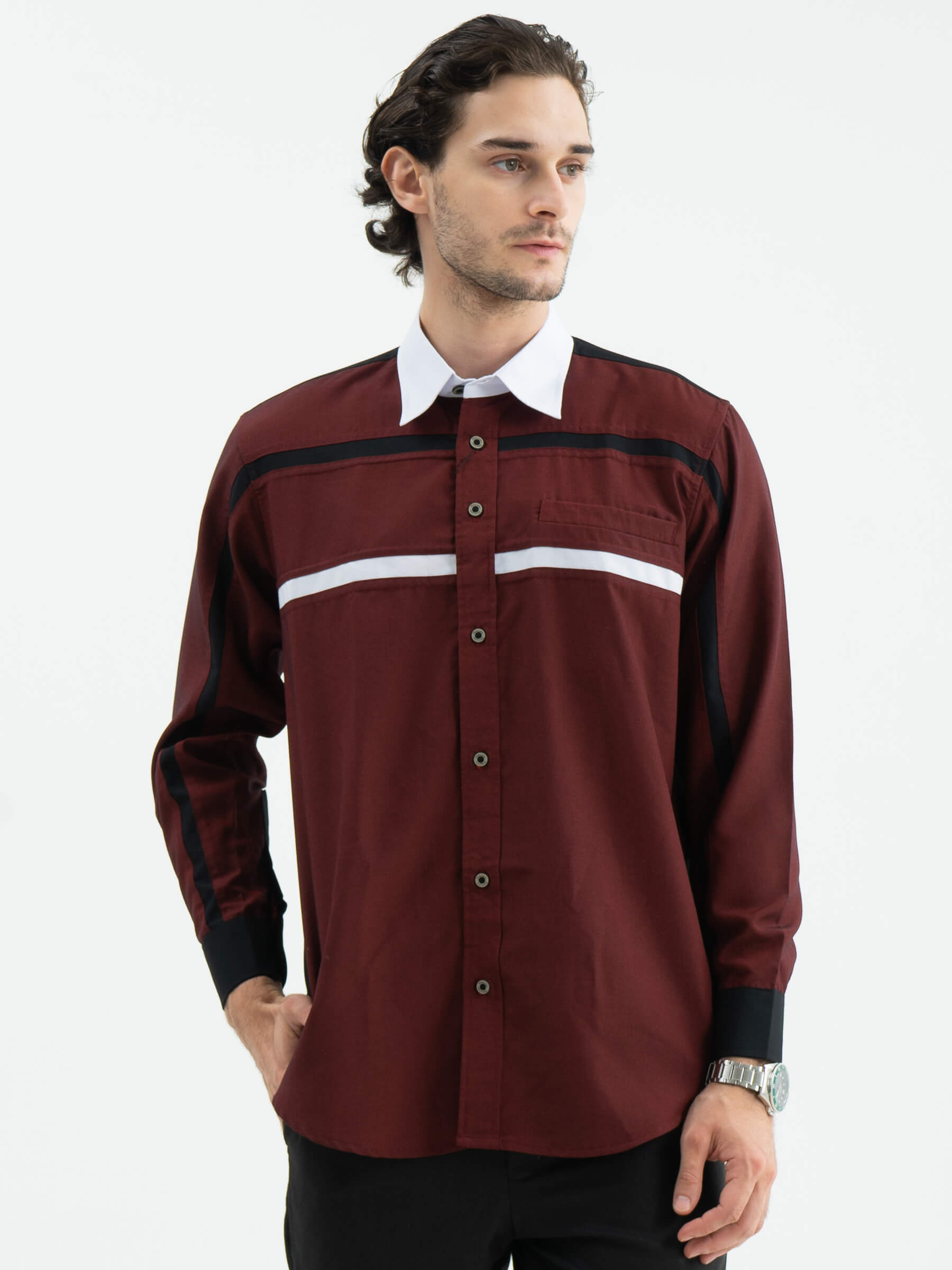 List horizontal yang bersambung dari lengan kanan ke kiri bagian depan hingga bagian dada atas menjadi simbol persatuan dan keindahan dalam perbedaan. Bagian kerah dengan warna tersier yang anggun dan list horizontal di dada menambahkan sentuhan klasik yang memberikan kesan eksklusif.