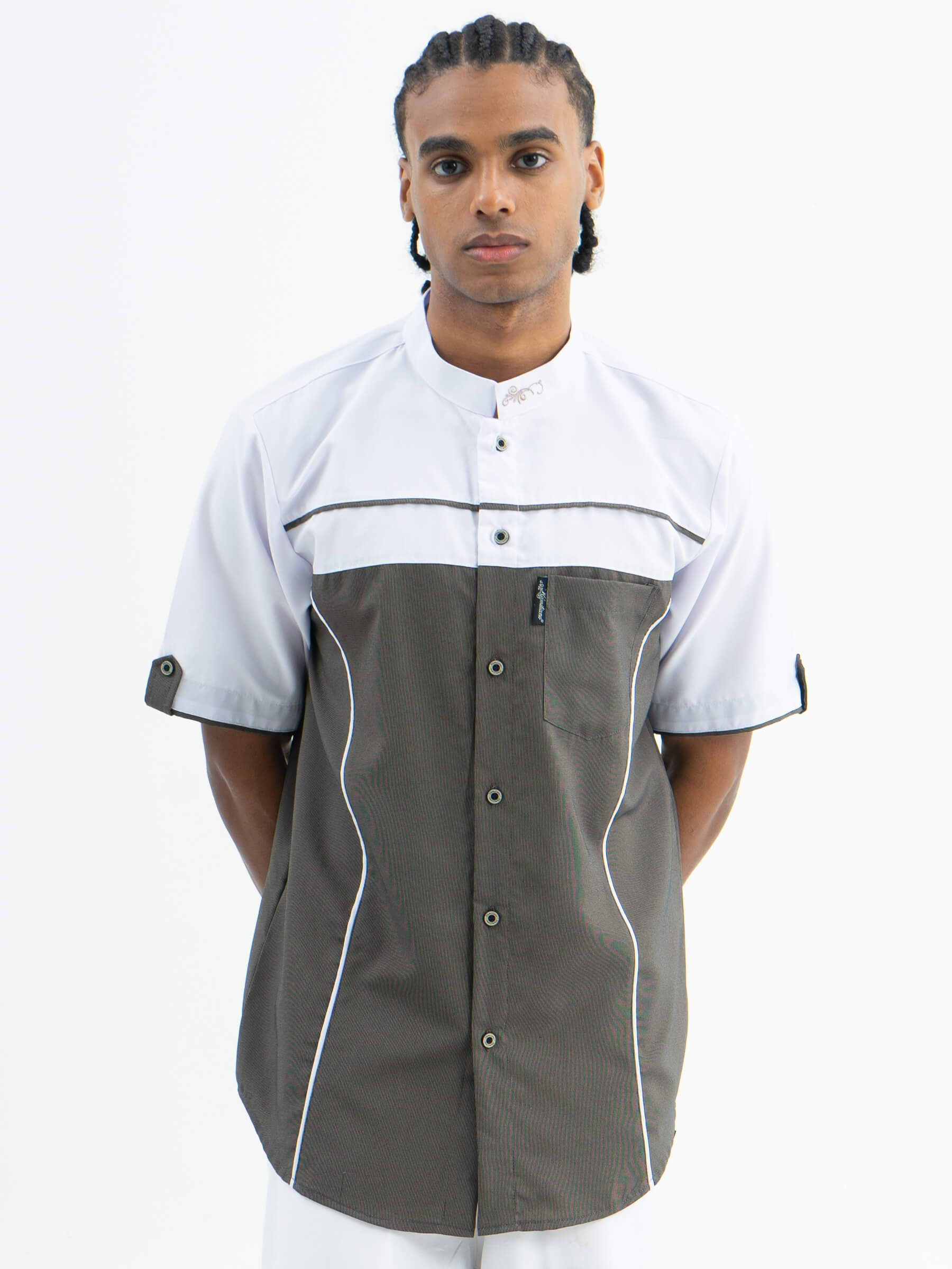 Kantung di dada kiri adalah sentuhan fungsional yang memberikan nilai praktis tanpa mengorbankan estetika. Tempat kecil ini menjadi cermin keberlanjutan gaya hidup modern yang membutuhkan kenyamanan tanpa mengorbankan keanggunan.